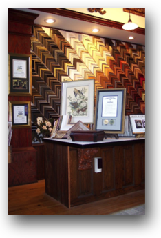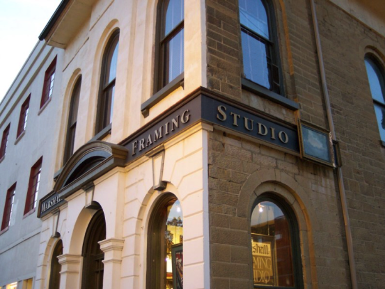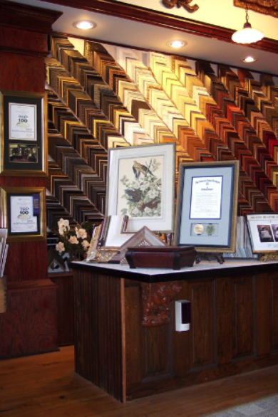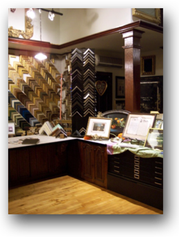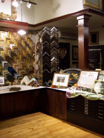 The home of Marchall Framing Studio was buiilt by Horace J. Perrin for the Perrin Bank which he founded, constructed in1865 wtih classic stone from the Marshall Quarry. After purchasing the building in 2000 the grand old bank was restored with 15' ceilings, custom milled mouldings, fine woodwork, and bank tellers window. The original vault still keeps valuable items for framing safe and secure.